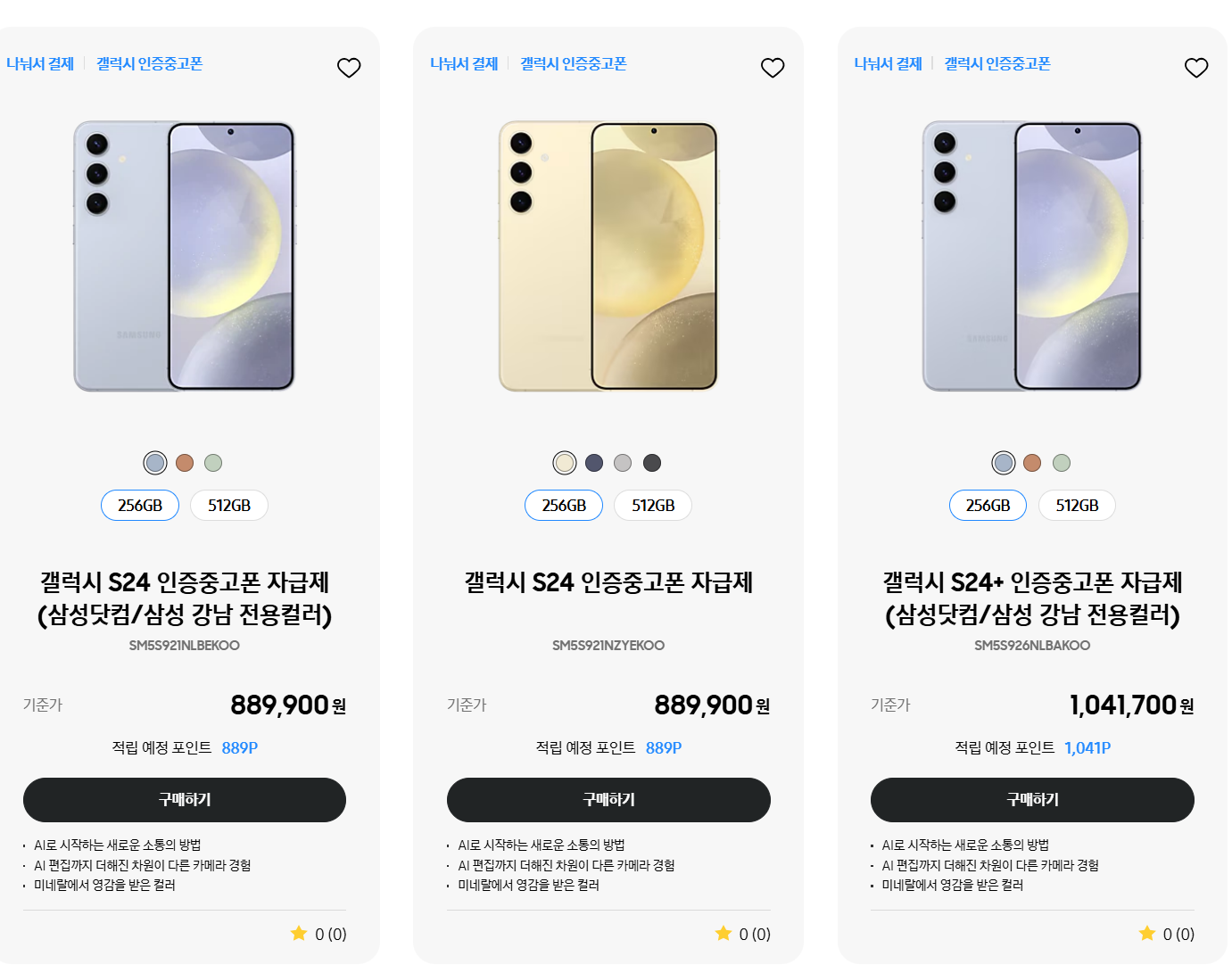 - S24 256GB: 88만 9,900원