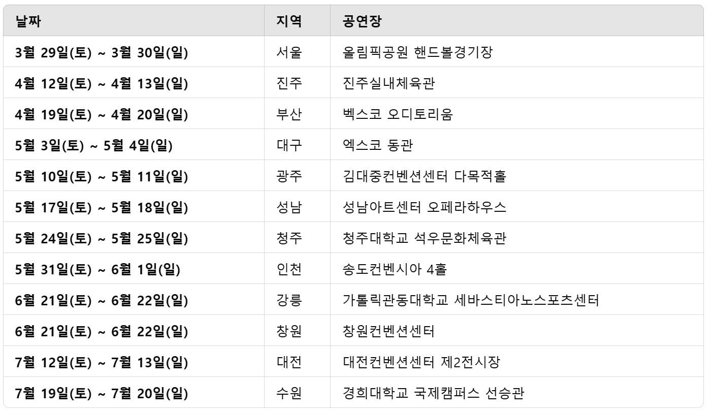 각 지역별 날짜와 공연장이 다르기 때문에, 원하는 공연을 놓치지 않도록 체크 필수!