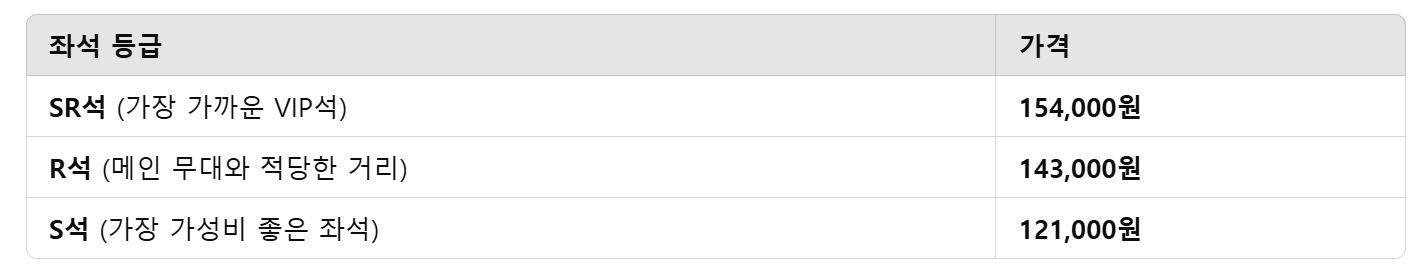 🎟 티켓 가격: 좌석 등급별 상이 (R석 ~ VIP석)