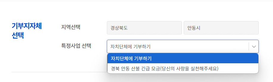 아래에서 경북 안동 산불 긴급 모금으로 선택해주시면 됩니다.