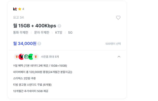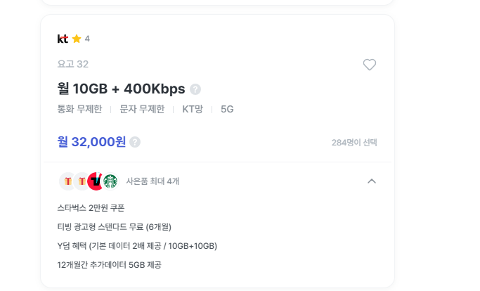 네이버페이, 스타벅스, 추가데이터 등 사은품도 덤으로 붙어 있어요.