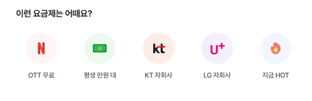 요금제 찾기로 들어가서 OTT무료를 누르면 OTT를 무료로 제공하는 요금제가 나옵니다.