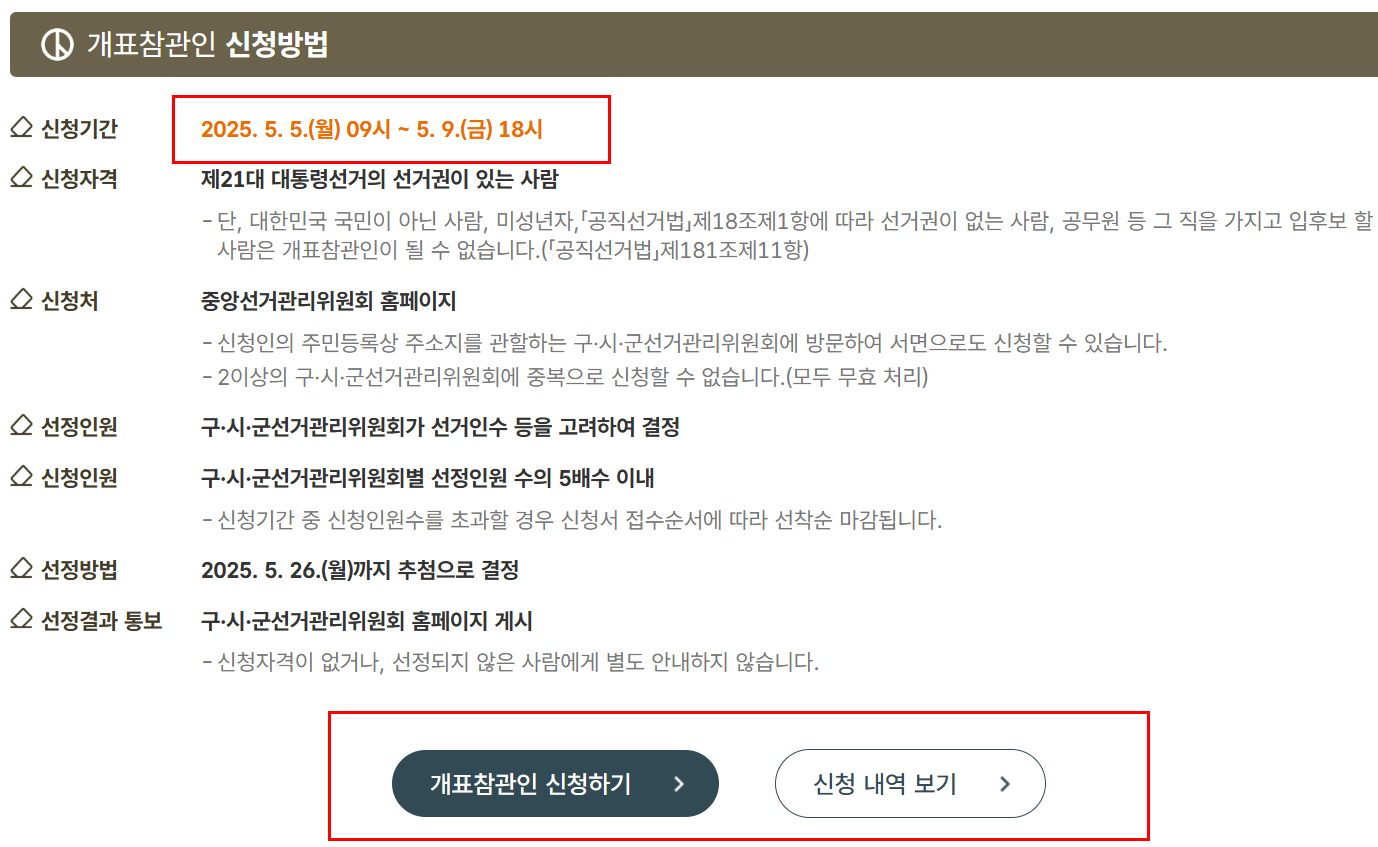개표 참관인 모집 공고는 보통 선거일 기준 3~4주 전에 올라옵니다.