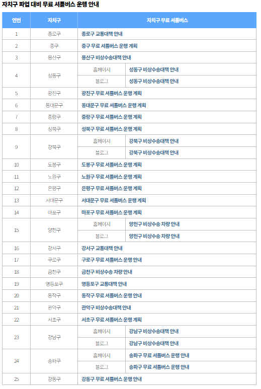 A. 서울시 공지 및 TOPIS, 뉴스 채널 등을 통해