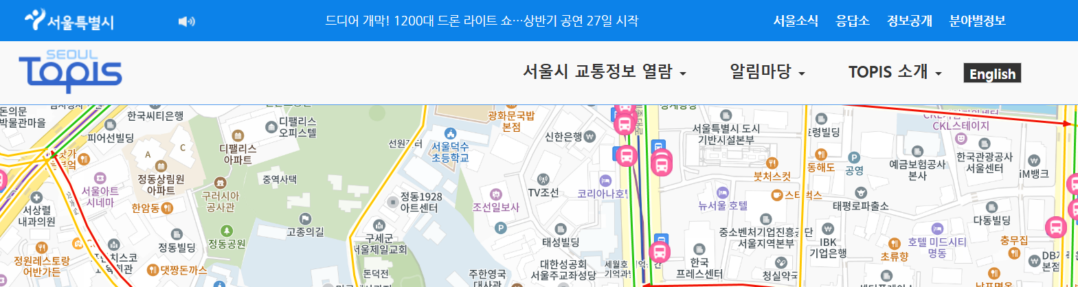 서울시는 TOPIS (서울시 교통정보 시스템)을 통해